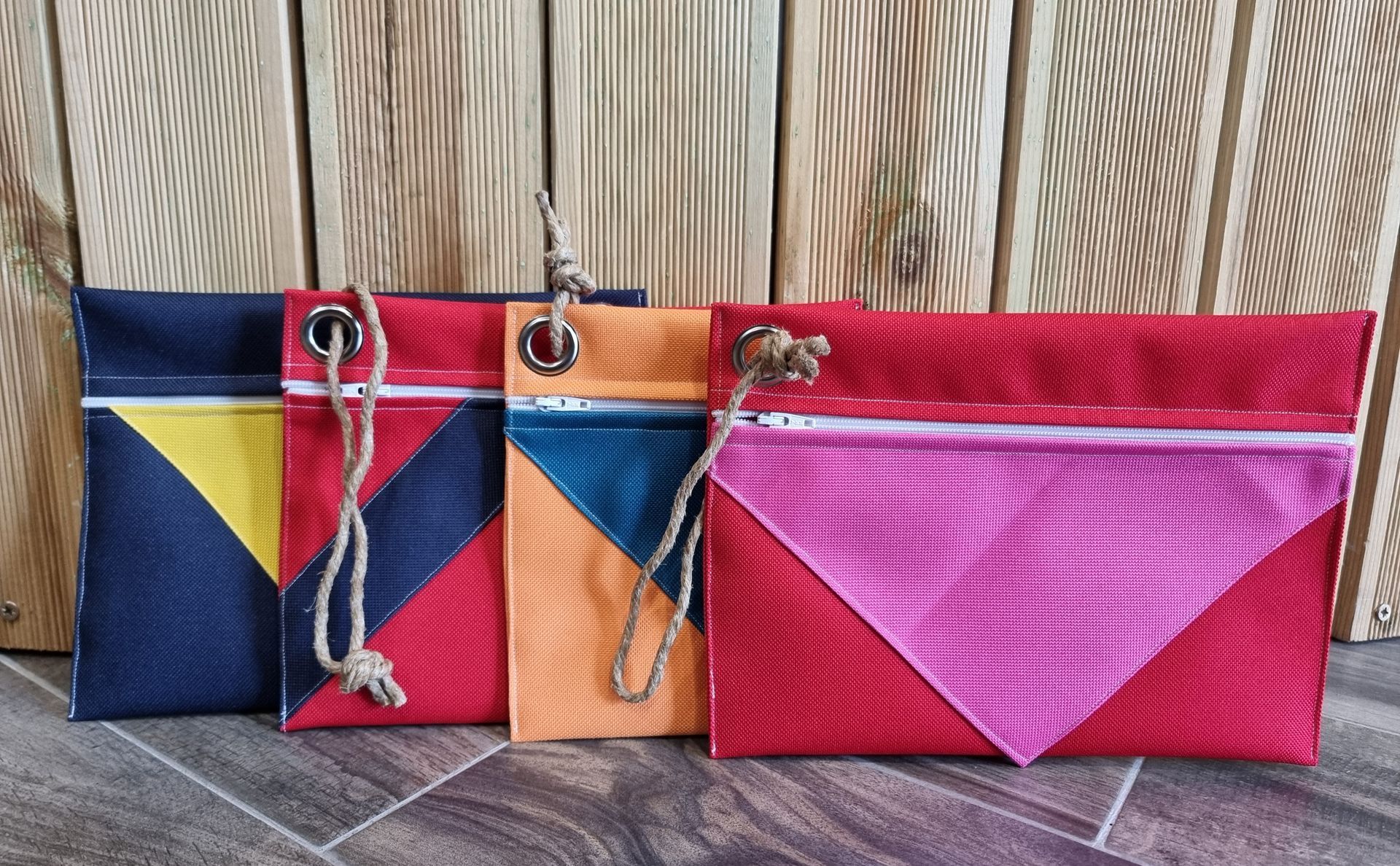 En toile Nautique, ces trousses colorées et étanches sont d'une grande contenance.
