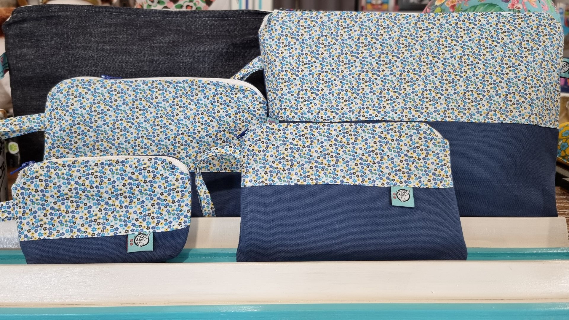 A la Fabrique nous aimons les couleurs. Ces trousses sont plein de couleurs et toutes les tailles il y en a pour tous les goûts!!! Porte monnaie 11€ (14x11cm, le fond a une profondeur de 3 cm) Moyenne trousse à sac15 € (18x14cm, pas de fond, trousse plate) Grande trousse maquillage ou scolaire 17 € (22x15 cm, le fond a une profondeur de 4 cm) Trousse Toilette 26 € (33x18cm, le fond a une profondeur de 6 cm) A chaque trousse son usage... : -La moyenne trousse : parce que toutes nos cartes de fidélité, et objets personnels tombent et se mélangent au fond du sac à main -La Grande Trousse parce que la poudre de notre fard à paupières se glisse partout dans notre trousse de toilette ou pour ranger nos clefs et nos petits bazars Toutes les trousses sont doublées étanches et lessivables avec des fermetures éclair YKK