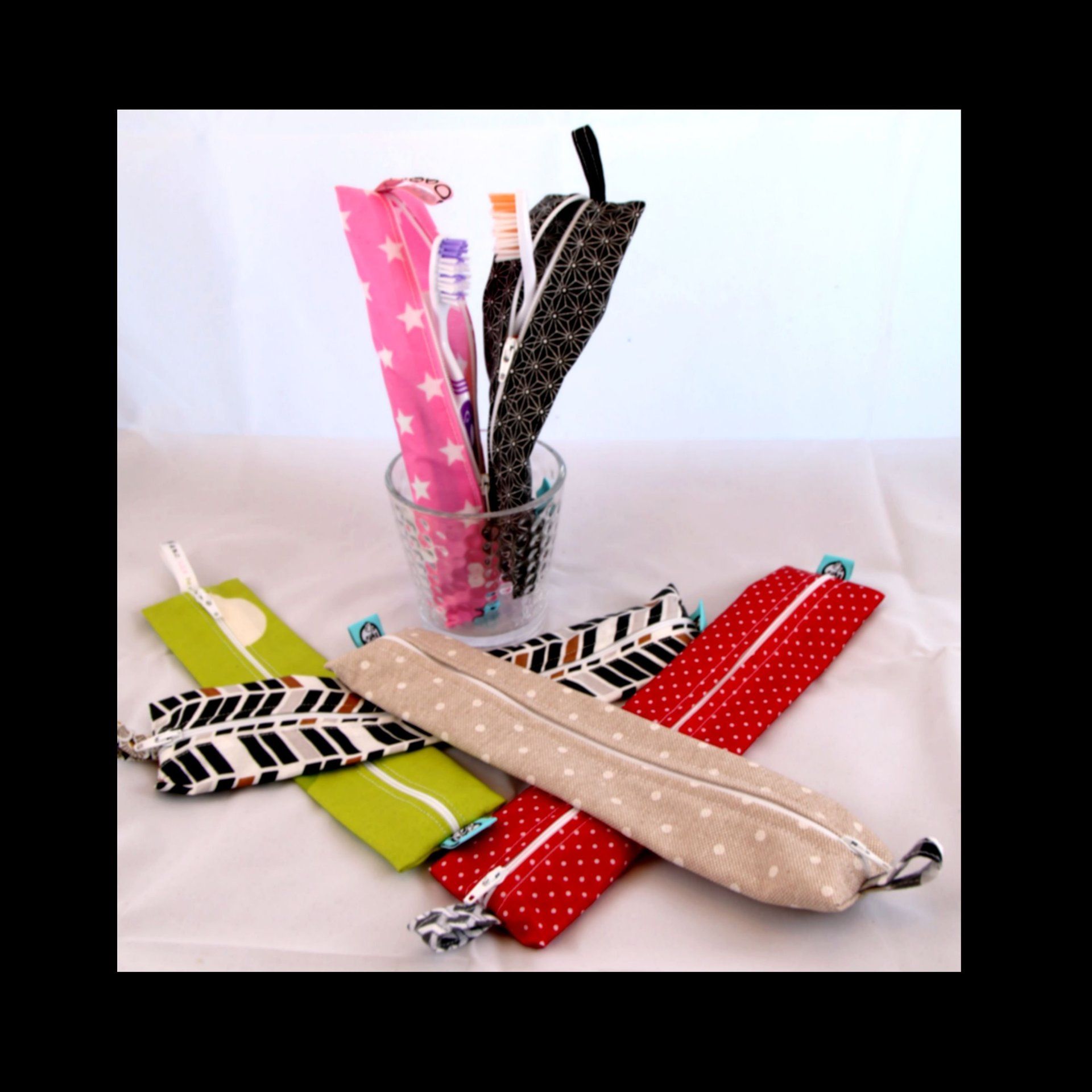 Vos brosses à dents seront protégées avec ces jolies trousses en coton enduit ou polyester enduit. Les trousses sont étanches et lessivables Vous pourrez y ranger votre brosse à dents traditionnelle et votre tube de dentifrice ou votre brosse à dent électrique 10 €